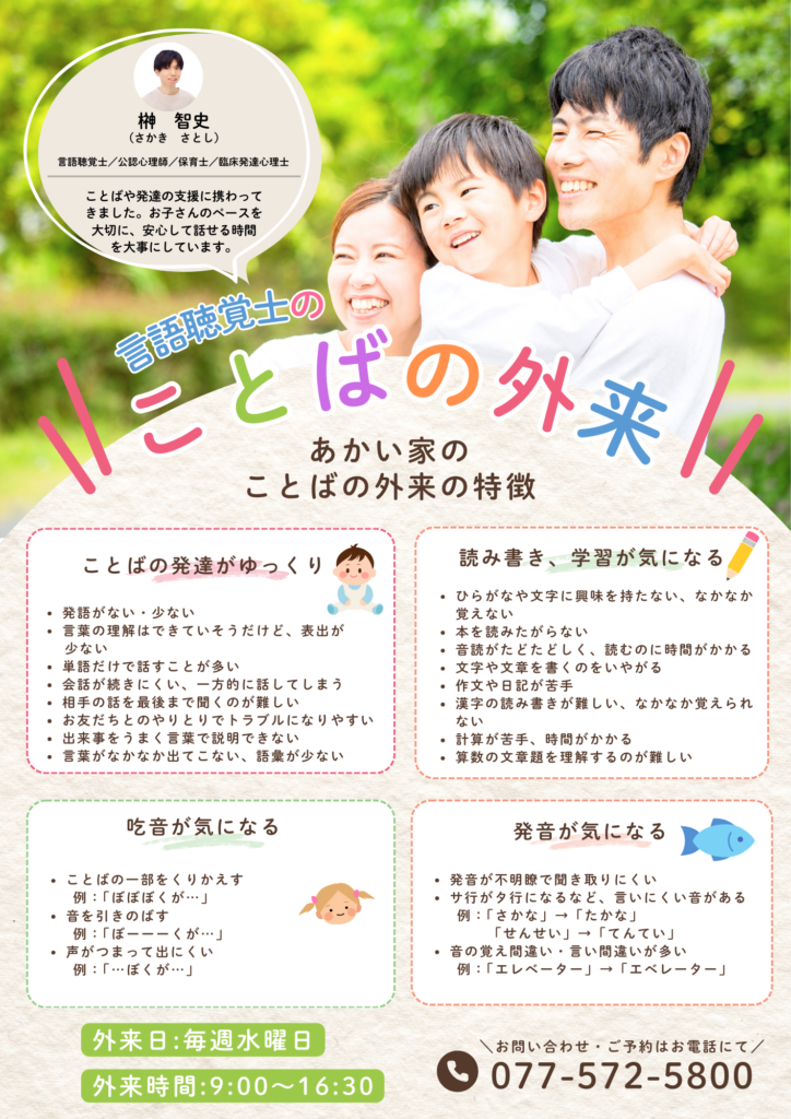 ことばの発達や読み書きのつまずき、発音や吃音など、気になることを言語聴覚士が丁寧に伺い、お子さまのペースに合わせてサポートします。